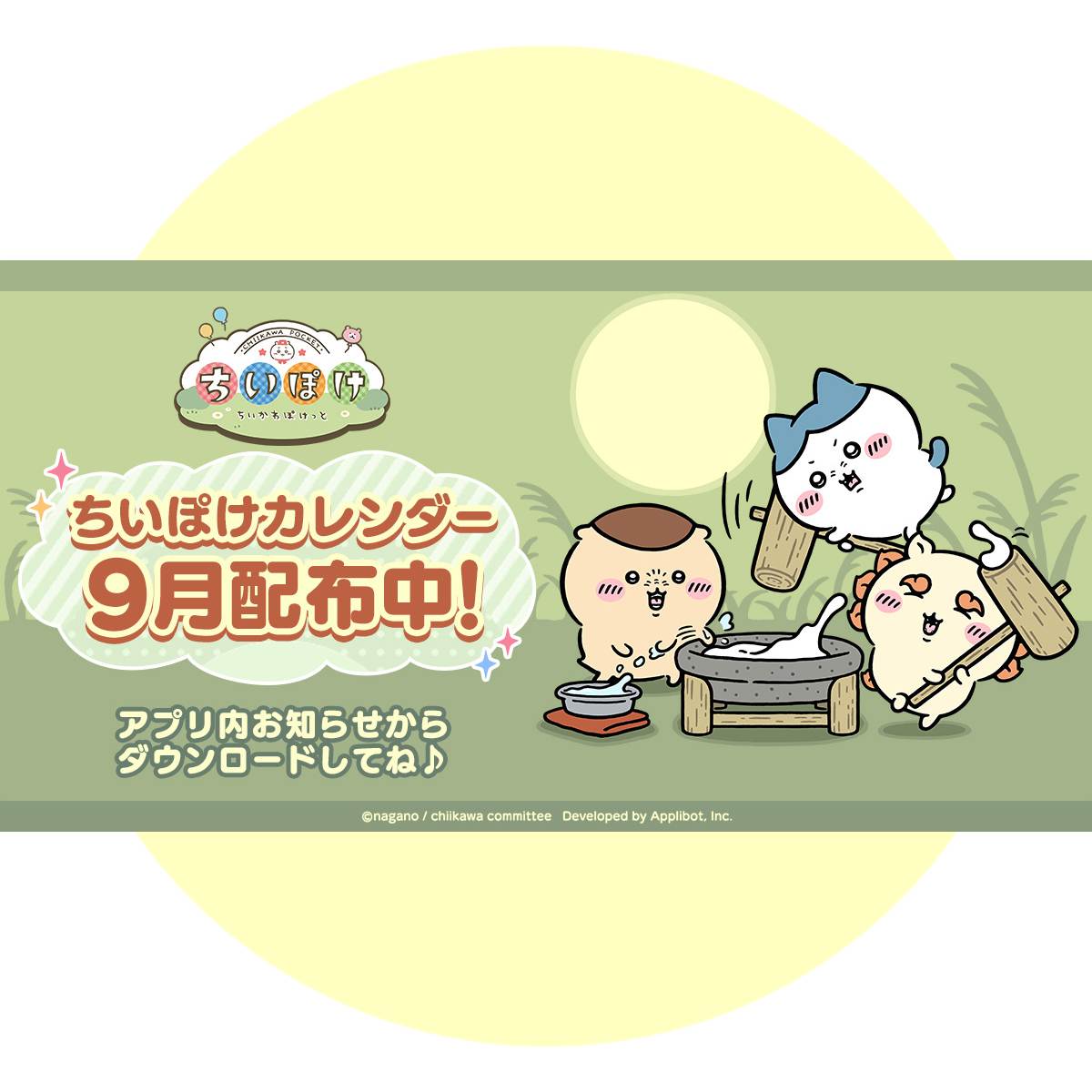 【ちいぽけ】9月カレンダー壁紙はお月見団子を作ってるハチワレとくりまんじゅうとシーサー!