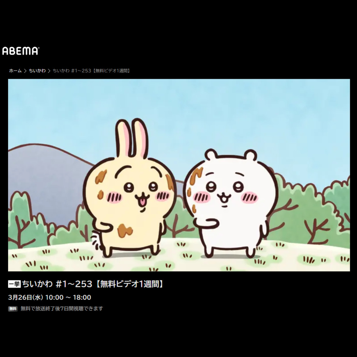 「ちいかわ公式無料チャンネル」ABEMAに新設!1話から最新話までぶっ続け放送!