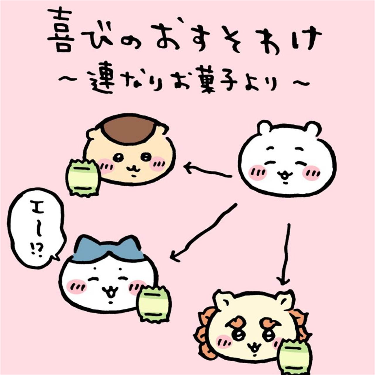 【ちいかわマンガ】ハチワレの言葉にカニちゃん嬉し泣き!喜びのお裾分け回